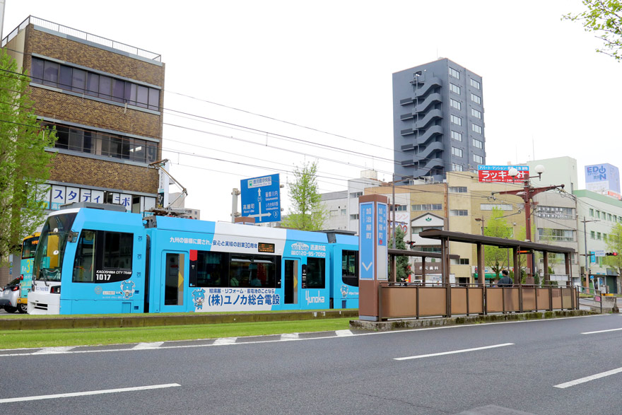〔 鹿児島市電 鍛治屋町 電停に到着! 1000形 1017(ユートラム)郡元行き R. 5. 4. 5 撮影 〕