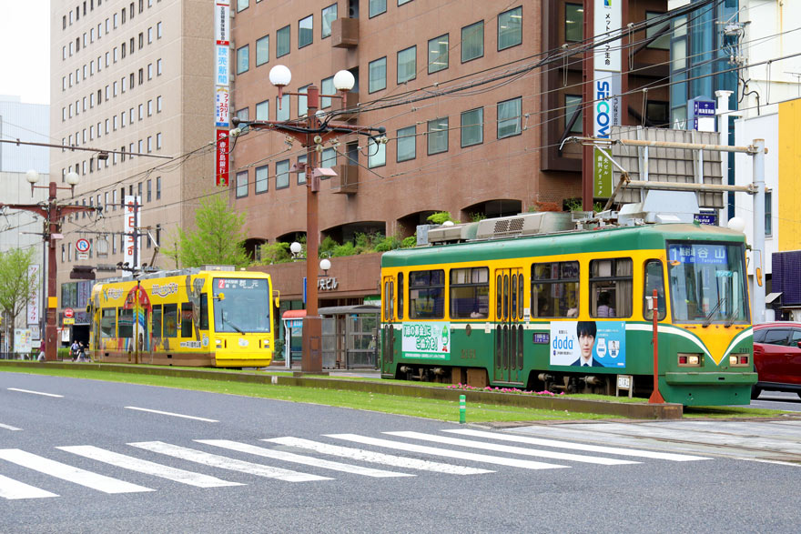 〔 鹿児島市電 2系統 7500形 7503(ユートラムⅢ)郡元行き・1系統 2130形 2131 谷山行き R. 5. 4. 5 撮影 〕