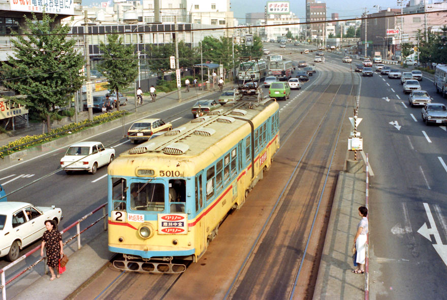 〔 熊本市電 電報局前電停にて 田崎橋行き ”5000形 5010 ” S.54.9.4 撮影 〕