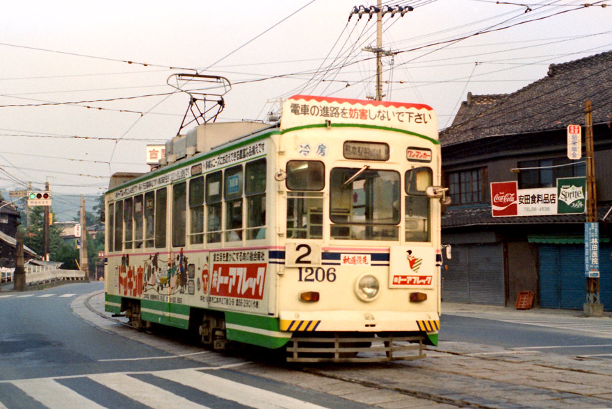〔 熊本市電 祇園橋電停付近 熊本駅・田崎橋行き ” 1200形 1206 ” S.54.9.4 撮影 〕