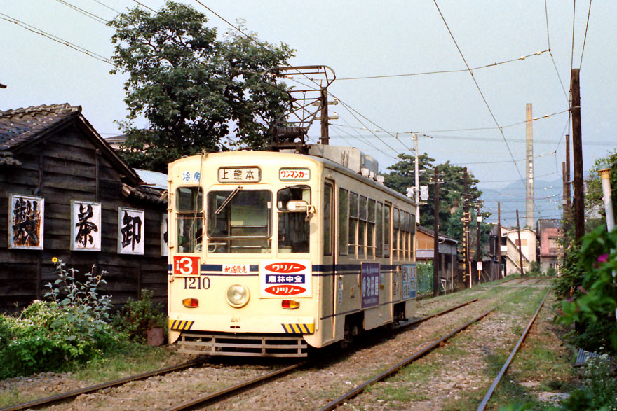 〔 熊本市電 洗馬橋~新町間 上熊本行き ” 1200形 1210 ” S.54.9.4 撮影 〕