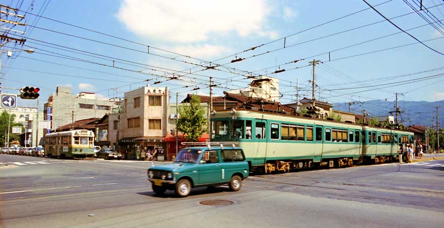 〔 京都市電 東山三条交差点にて 京阪電車 京津線80型とのコラボ! ”S.53.7 撮影 〕