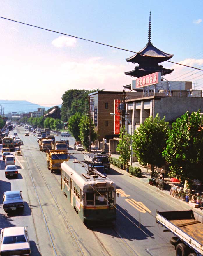 〔 京都市電 九条通 東寺をバックに走る! 22系統 S.53.7 撮影 〕