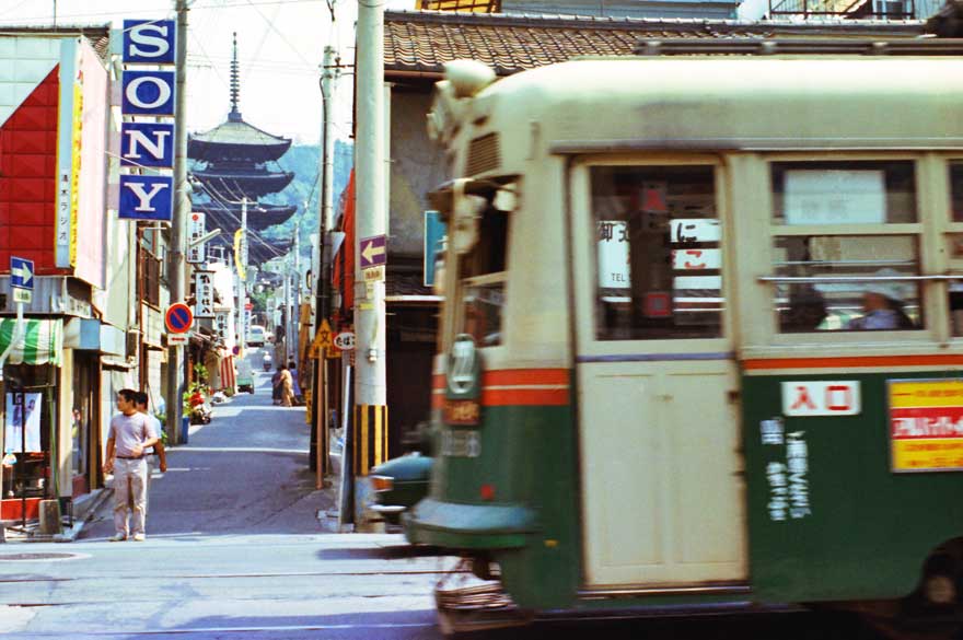 〔 京都市電  清水道      八坂の塔が垣間見える!           S.53.7 撮影 〕