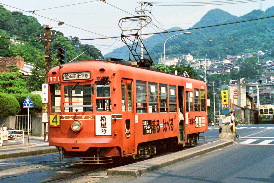 〔 長崎電軌 蛍茶屋電停にて 正覚寺行き 柗屋号 ” 370形 371 ” S.54.9.6 撮影 〕