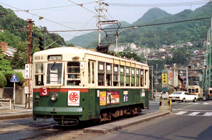 〔 長崎電軌 蛍茶屋電停にて 赤迫行き ” 600形 601 ” S.54.9.6 撮影 〕