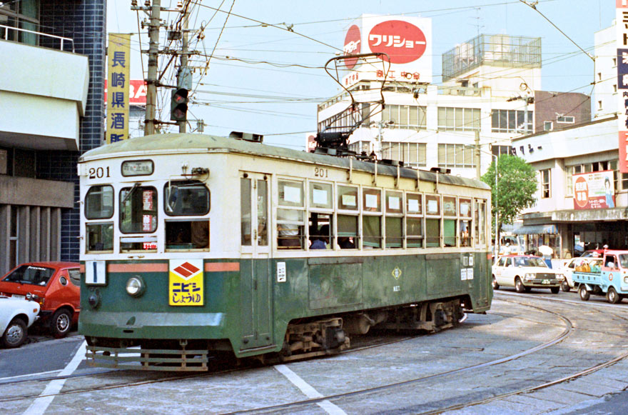 〔 長崎電軌 築町~入江町 正覚寺行き ” 201形 201 ” S.54.9.6 撮影 〕
