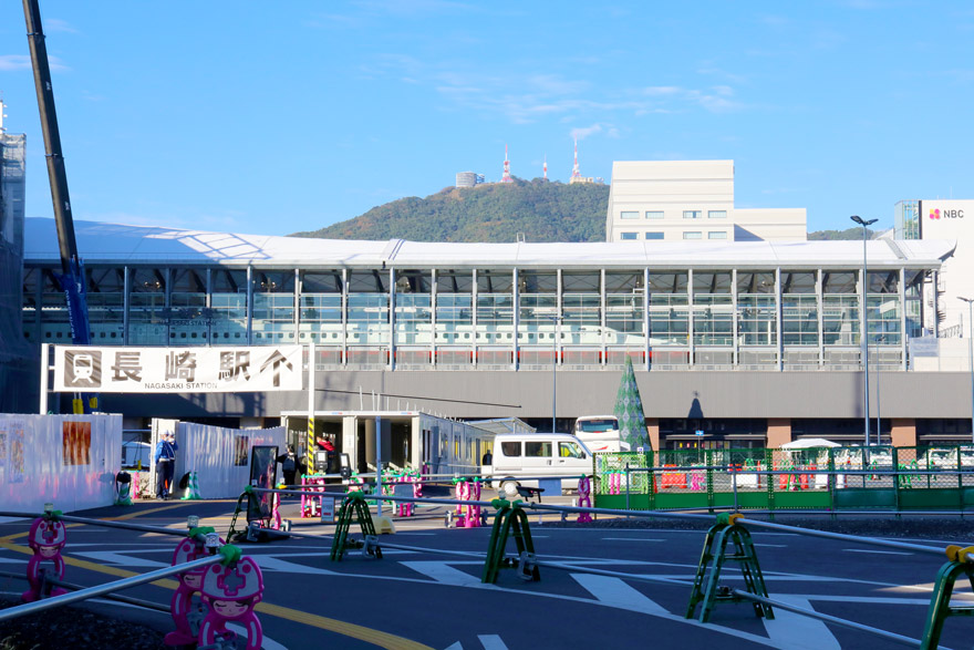 〔 JR 長崎駅 西九州新幹線および長崎本線の終着駅。長崎駅前周辺の整備事業で工事中! R. 4. 11. 25 撮影 〕