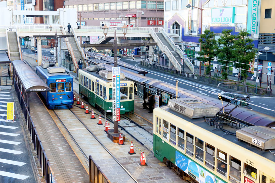 〔 長崎駅前電停 停留場は併用軌道区間にありホーム長は40メートル余りの相対式ホーム! R.4. 11. 25 撮影 〕