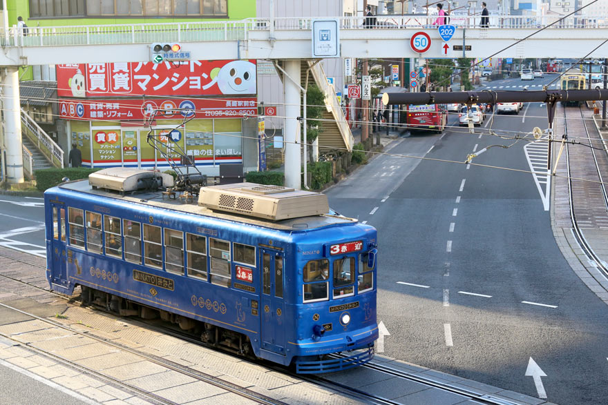 〔 長崎電軌 長崎駅前に到着する ” 水戸岡鋭治氏 ” デザインによる! 310号「みなと」 赤迫行き R.4. 11. 25 撮影 〕