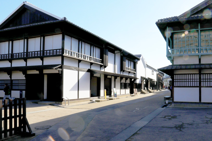 〔「出島」 オランダ商館長次席の「ヘトル部屋」や輸入品であった砂糖を保管した「一 番蔵」などの建物が復元された。〕
