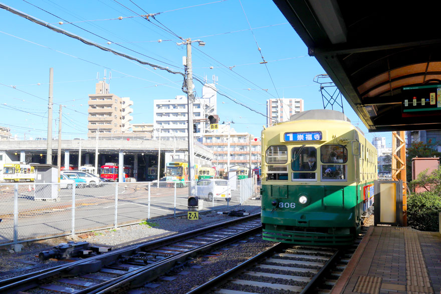 〔 長崎電軌 浦上車庫停留場  浦上車庫と隣接しており、停留場は専用軌道区間にある。    R.4. 11. 25 撮影 〕