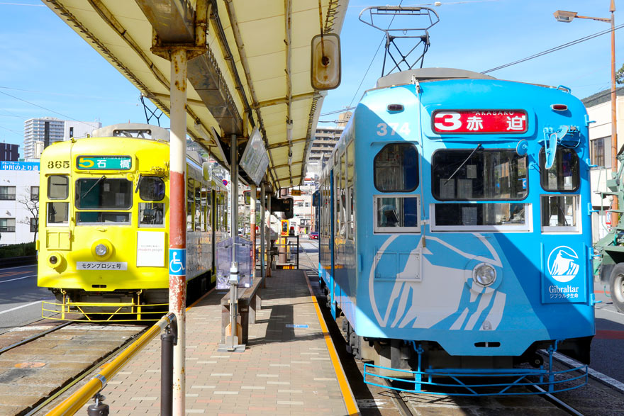 〔 長崎電軌 蛍茶屋停留場 蛍茶屋支線の終点で2号系統 3号系統 4号系統 5号系統が停車! R.4. 11. 25 撮影 〕