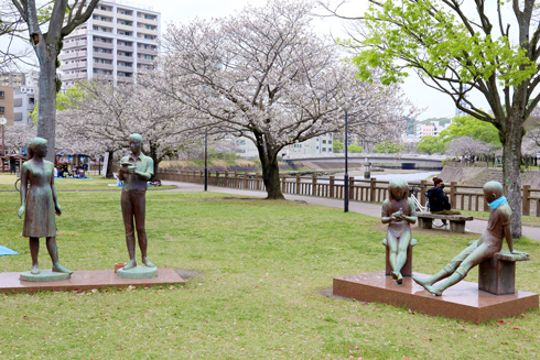 鹿児島市にある高見橋上の母と子どもの群像の母像!