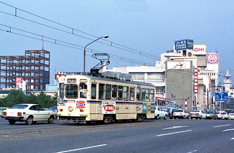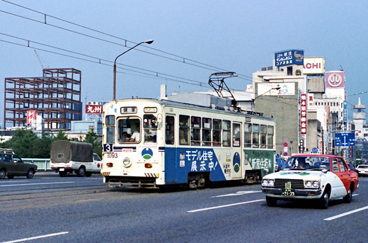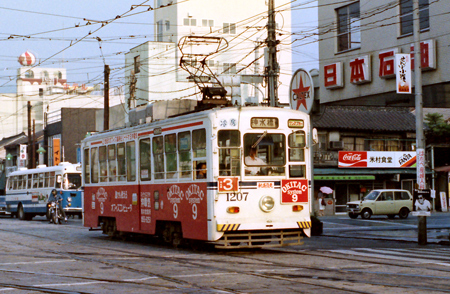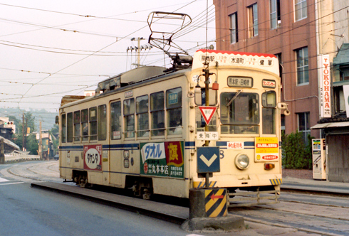 1924年に熊本市電車部として開業、1959年に最後の開通区間である熊本駅前~田崎橋が開