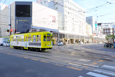 西浜町交差点で本線と蛍茶屋支線の軌道