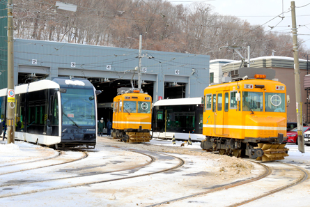 冬季の除雪のために運転される ”ササラ電車” は、冬の訪れを告げる風物詩として有名ですが、