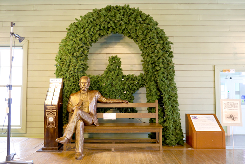 当時の写真や資料を基に作られました。ベンチにともに腰掛け