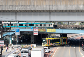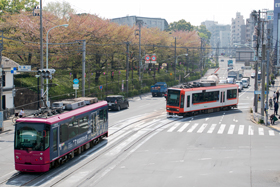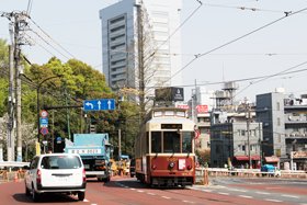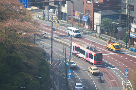 併用軌道は明治通り(国道122号)上の王子駅前 -飛鳥山間と小台 - 熊野前間のみです。荒川線