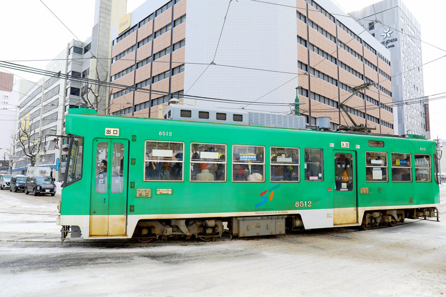 〔 札幌市電 資生館小学校前 停留場に到着する! 内回り 8500形 8512 R. 7. 2. 12 撮影 〕