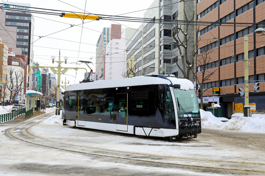〔 札幌市電 資生館小学校前 停留場を発車する! 外回り 1000形 1106 「シリウス」 R. 7. 2. 12 撮影 〕