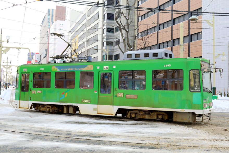 〔 札幌市電 資生館小学校前 停留場を発車した!  外回り 3300形 3305    R. 7. 2. 12 撮影 〕