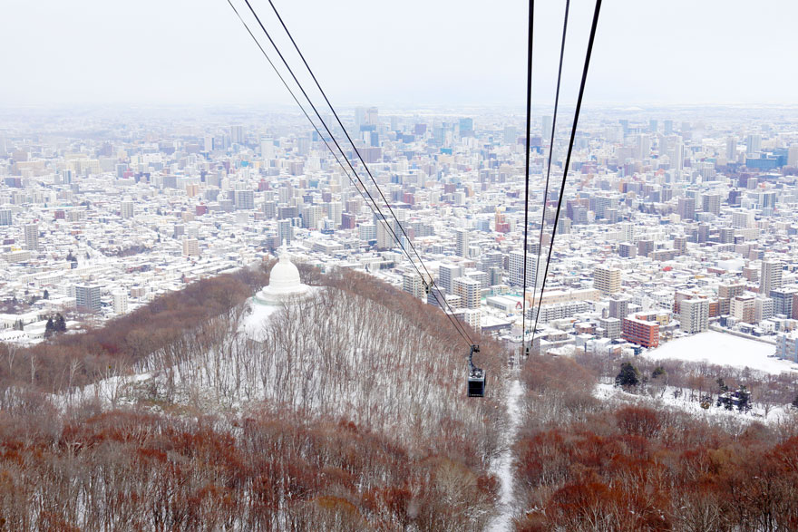 〔 もいわ山ロープウェイ 眼下に藻岩山の原始林や札幌の街が一望でき、約5分間の空中散歩は爽快です! 〕