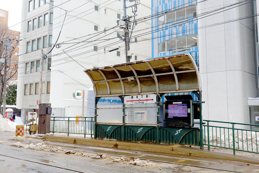 〔 札幌市電 西8丁目 停留場 交差点を挟んで2面2線の対向式! 中心街まで約10分ほどで徒歩圏内。〕