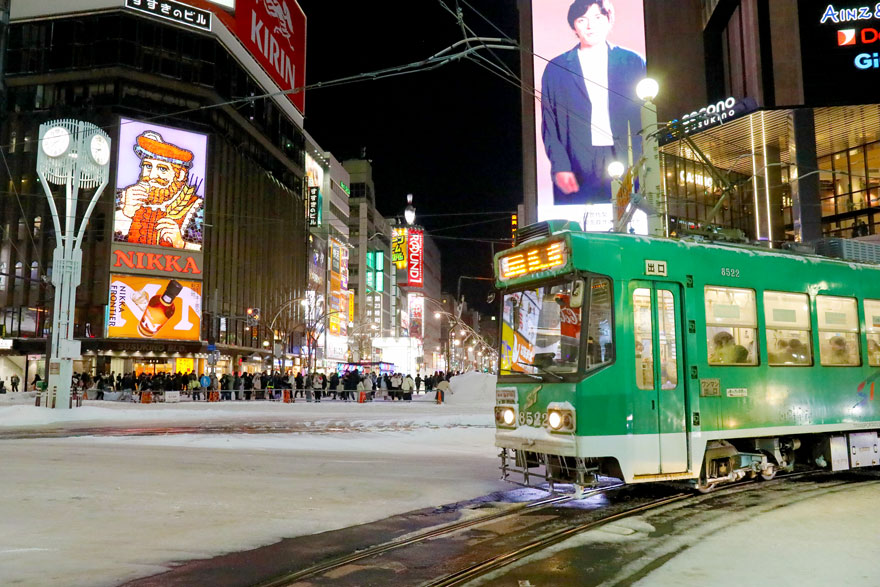 〔 札幌市電 すすきの 停留場を発車! 内回り 8520形 8522 R. 7. 2. 11 撮影 〕