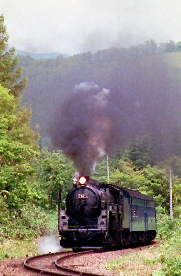 〔 函館本線 小沢~倶知安 ワイス温泉付近のSカーブを往く! C62 3号機 H.2.6 撮影 〕