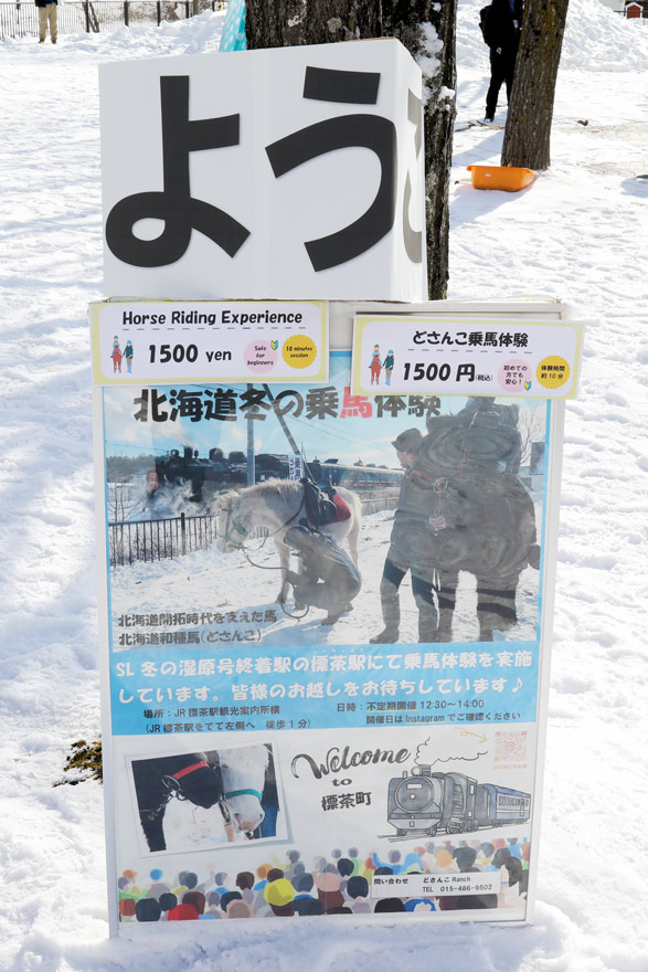 〔 標茶駅 駅前で「どさんこ乗馬体験」(1500円) R. 7. 2. 14 撮影 〕