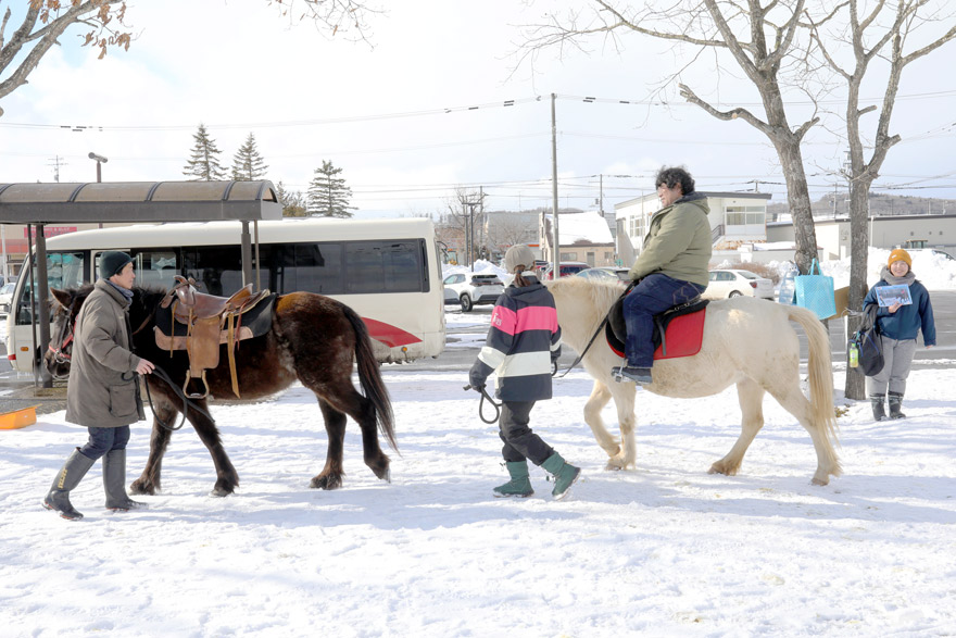 〔 標茶駅 駅前で 「どさんこ乗馬体験」 (1500円) R. 7. 2. 14 撮影 〕