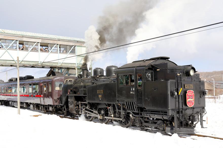 〔「SL冬の湿原号」 標茶駅 機関車と客車との連結を終え、釧路へ向けての発車準備完了! R. 7. 2. 14 撮影 〕