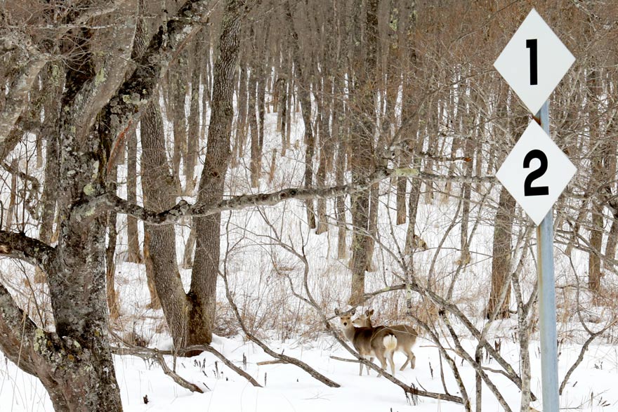 〔 釧網本線 釧路湿原駅  駅舎の周りには ” エゾシカ ” がうろうろ!  なんとも、優雅な風景ですね! 〕