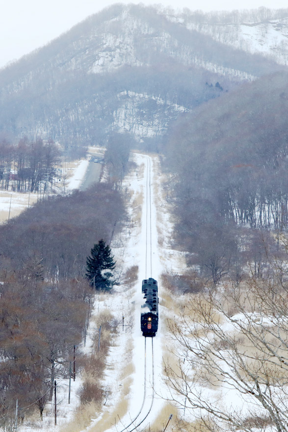 〔「SL冬の湿原号」釧路湿原~遠矢 直線区間をバック運転で釧路に向かう! 〕