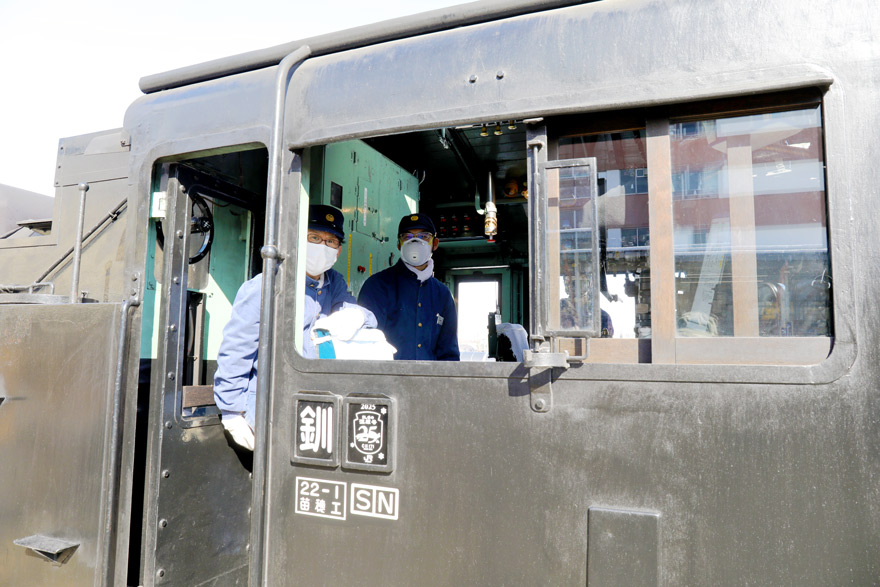 〔「SL冬の湿原号」 機関助士は石炭を火室に入れたり、ボイラーに水を送ったり、力を合わせてSLを動かしている! 〕