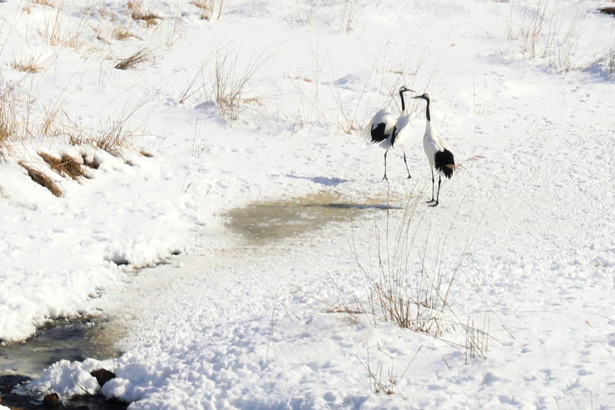 〔 塘路~茅沼 釧路湿原にて 繁殖期を控えて雄と雌が翼を広げ合う「求愛ダンス」があちこちで見られる! 〕