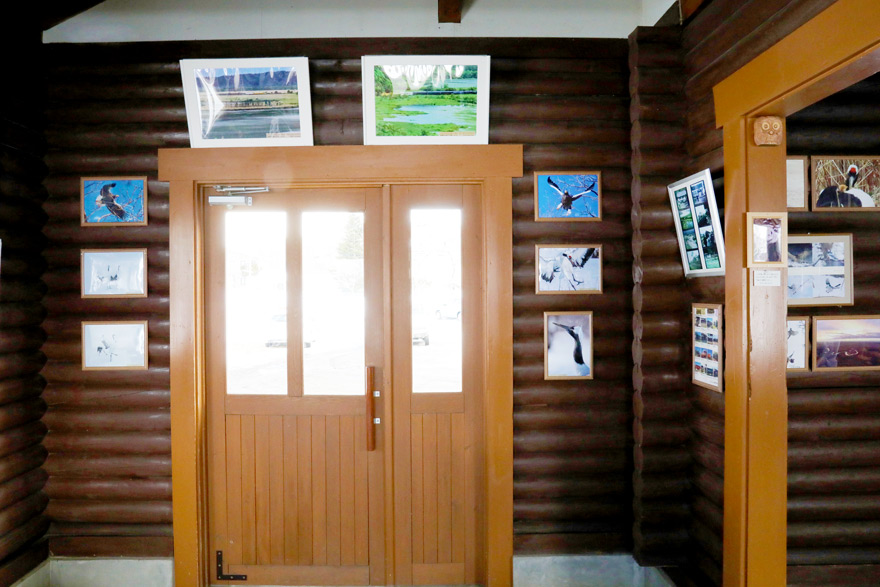 〔 釧網本線 茅沼駅  三角屋根のログハウスの駅舎内待合室には ” タンチョウ ” などの写真が多数展示されています! 〕