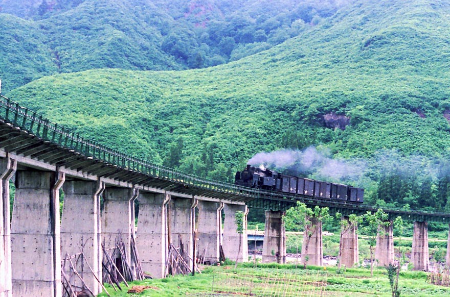 〔 只見線 会津蒲原~只見 陸橋を走る! ” C11 312号機 ”(貨1491列車) S. 49. 6. 17 撮影 〕