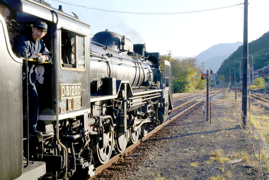 〔 津和野駅 「SLやまぐち号」 D51形 200号機の機関士が後方を確認しながら2番線ホームに転線!〕