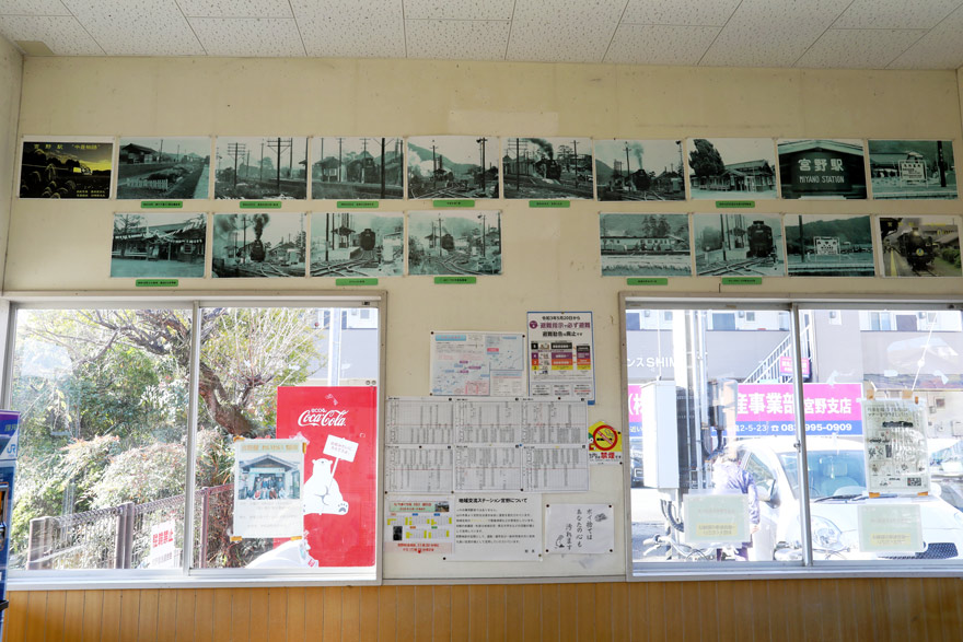 〔 山口線 地域交流ステーション宮野 駅舎内に昔の宮野駅の写真が貼られている。 R.7. 11 . 22撮影 〕