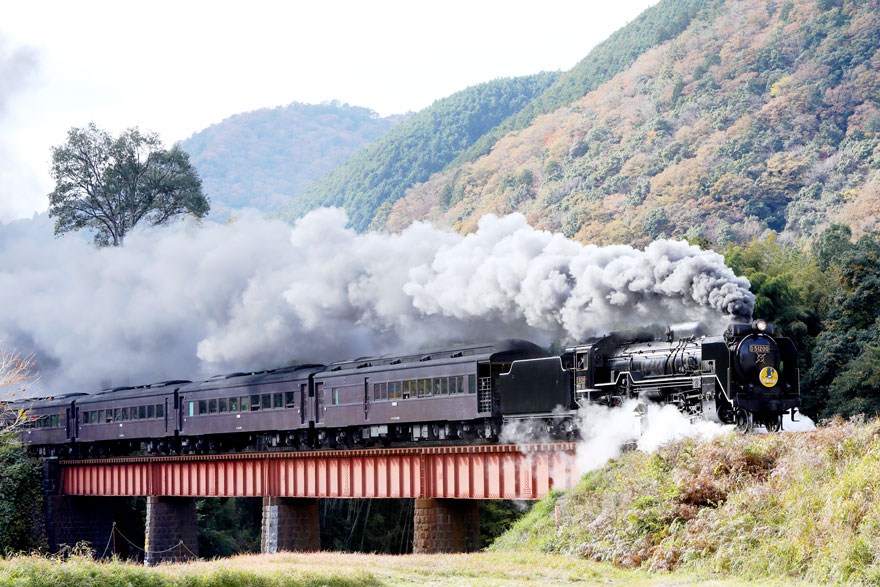 〔 山口線 長門峡~渡川 長門峡の鉄橋を往く! D51形 200号車牽引 「SLやまぐち号」 津和野行き 〕