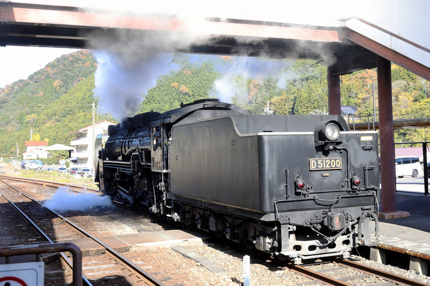 〔 山口線 津和野駅 「SLやまぐち号」 機関車のみ、再度、先頭に係員を乗せ入換側線へ! R.7. 11 . 29 撮影 〕