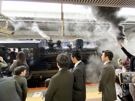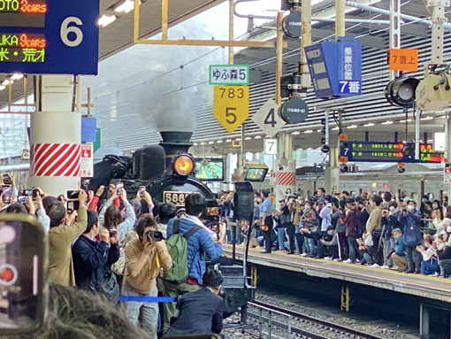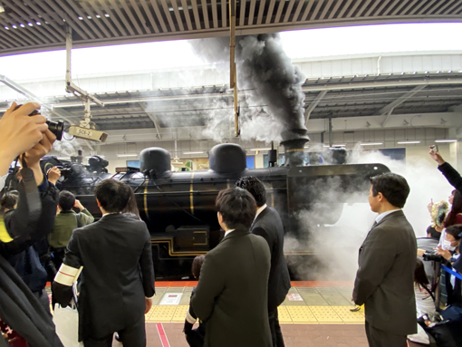 はDLが牽引、下り博多駅発熊本駅行き列車はSLが牽引)し、博多駅では出発式が行われた。