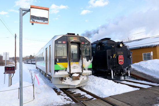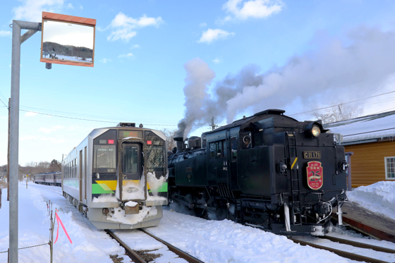 往路の標茶方面へはC11-171が先頭で客車を牽引しますが、標茶駅に転車台(ターンテーブル)がな
