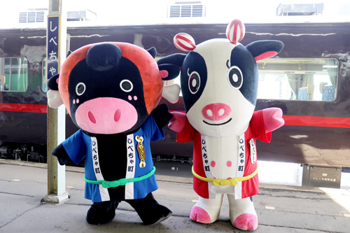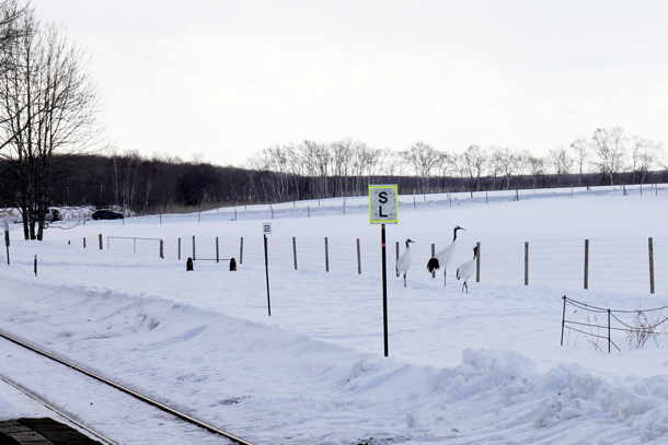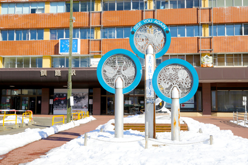 駅前には、釧路湿原のタンチョウをイメージ