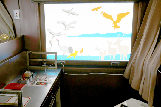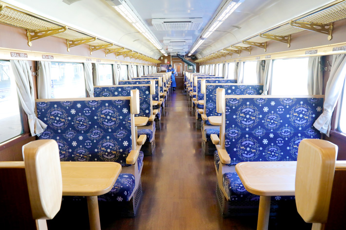 5両編成で1号車と5号車は「たんちょうカー」(スハフ14)、2号車が「ストーブカー(カフェカー)」