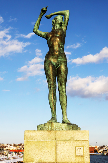 日本では珍しい、橋上彫刻の「四季の像」