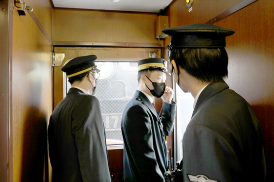 (スハシ44)、3号車と4号車が「ストーブカー」(オハ14)となります。
