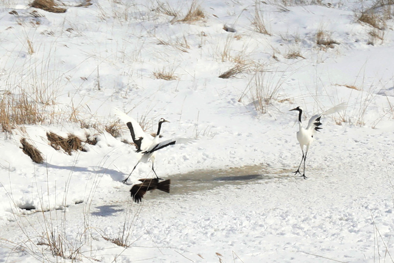 色が望め、そこに生息している丹頂鶴、エ